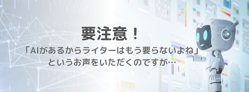 コピーライター、セールスライター、Webライター、編集者など、ライティングをしている方が増えている一方、「AIがあればライターが要らない」と勘違いしてしまっている方も大勢います。