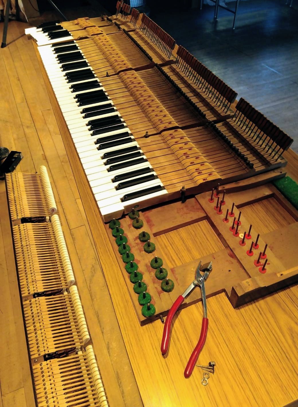 整調:鍵盤からハンマーまでのメカニズムを調整し、タッチや弾き心地を整える作業。