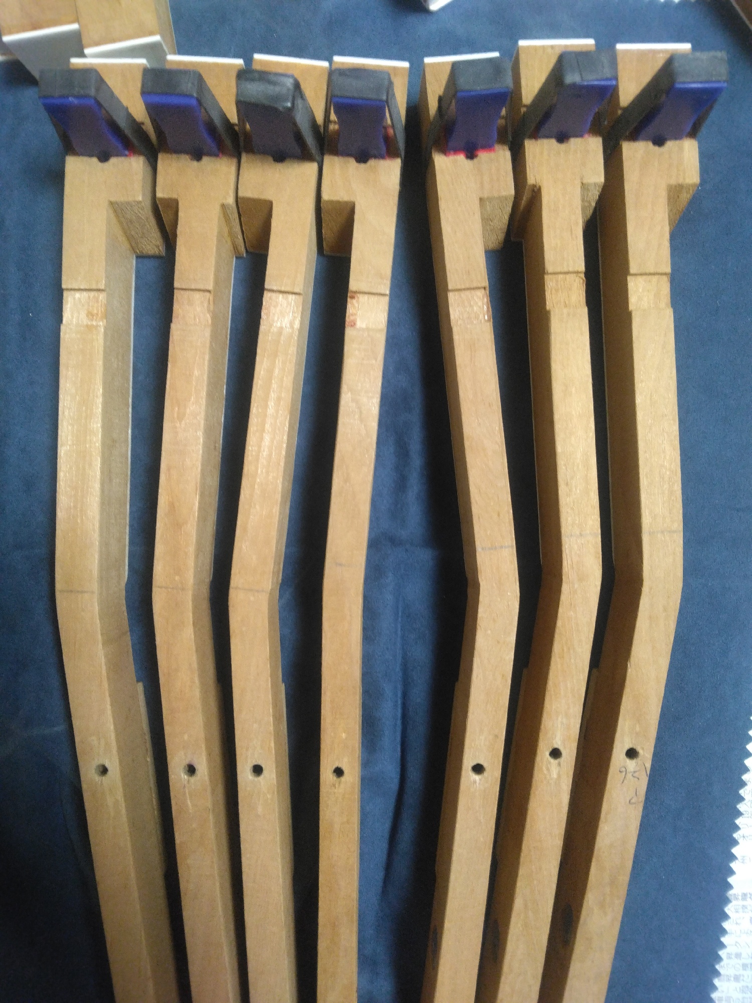 「鍵盤の穴の内側に貼ってある細いフェルトを新しいものに貼り替える作業です。