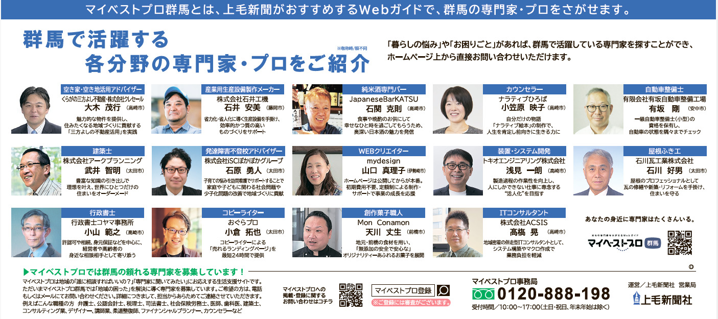 2025年2月27日(金)上毛新聞朝刊に「マイベストプロ群馬」顔写真広告掲載!