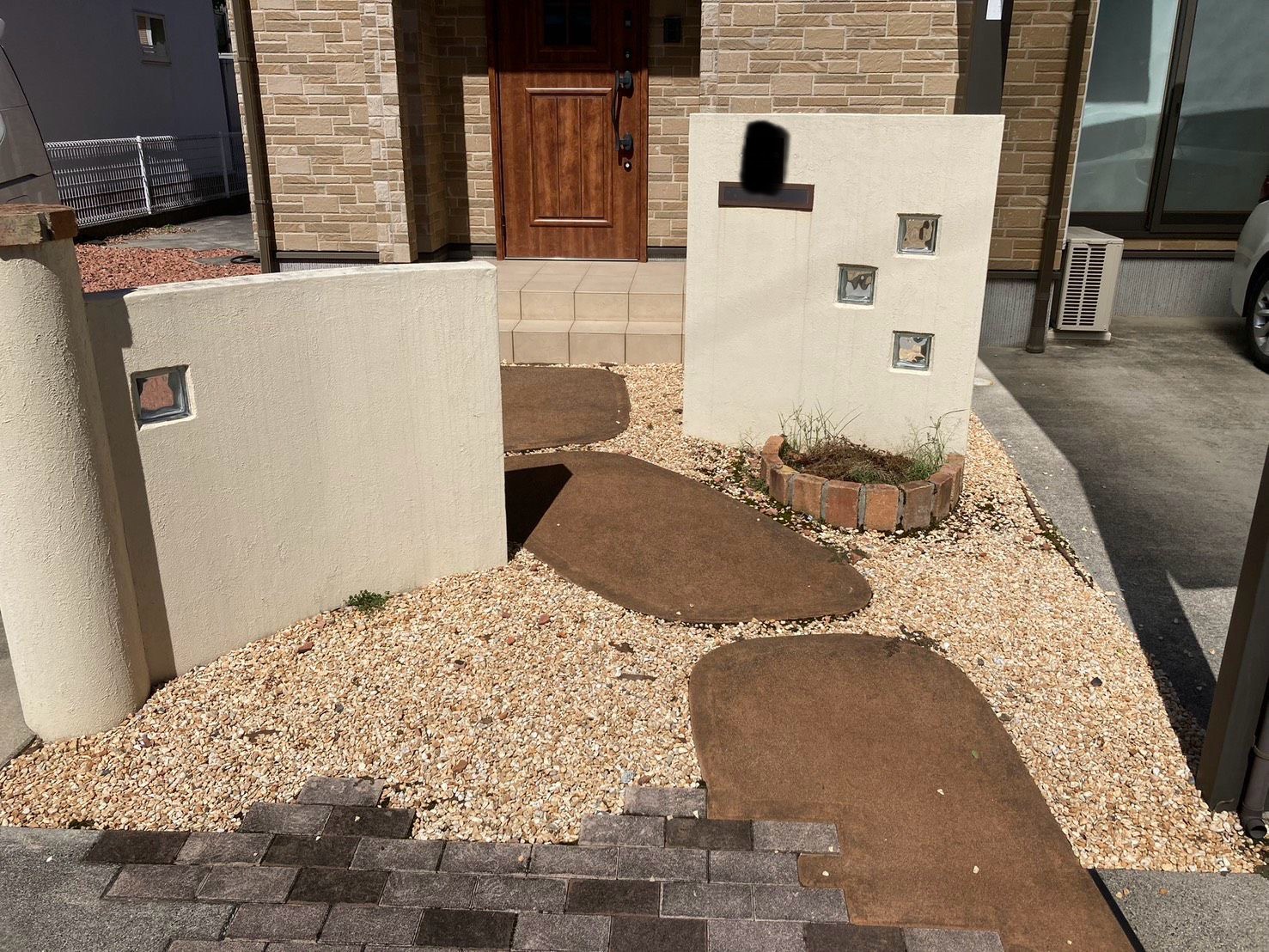 長い間、砂利敷きのお庭だったI様邸。雑草も気になり始め、何かもっとおしゃれで手入れしやすい空間にしたい!とお悩みでした。