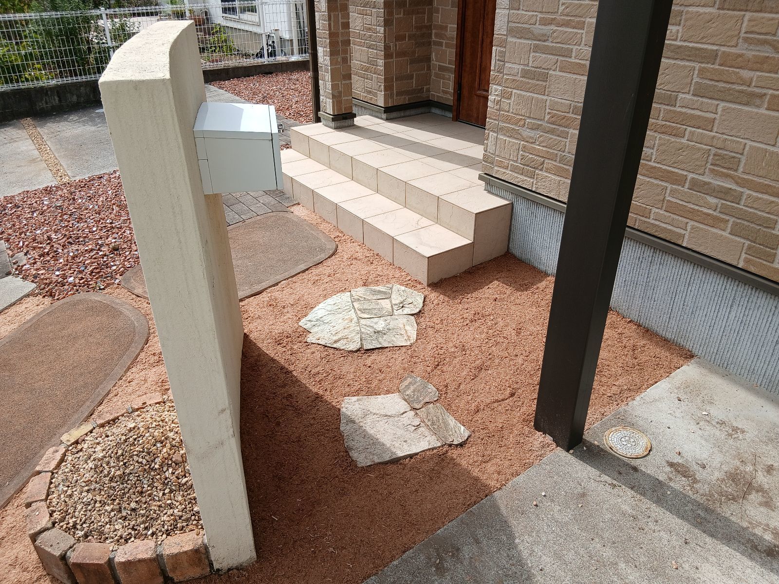 安佐南区I様邸の庭リフォームは、砂利からDECOマルチへのチェンジで大成功!