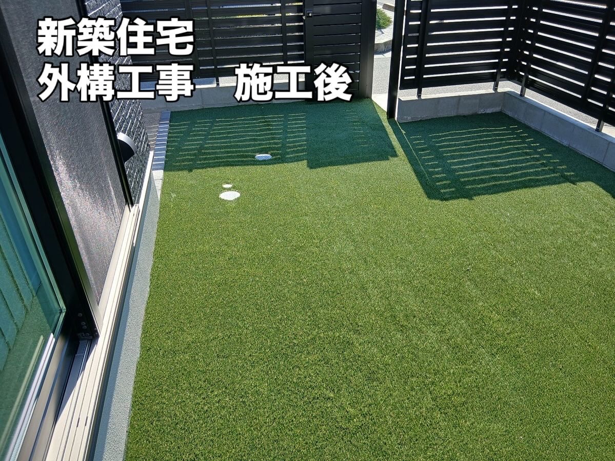 新築住宅の外構工事をお任せいただき、リアリーターフによる人工芝仕上げを施工しました