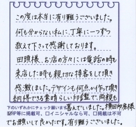 デザインも何点か作って頂き納得できる素晴らしい印鑑で、両親も喜んでいました。