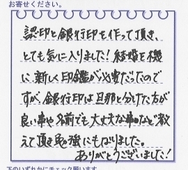 想像以上にすてきな銀行印を作っていただき、やはり職人さんに