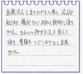 医療法人の設立に当店を選んでいただきありがとうございました。