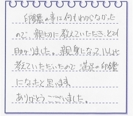 印鑑の事は何もわからなかったので、親切に教えていただき、とても助かりました。