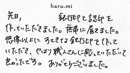 想像以上にすてきな銀行印を作っていただき、やはり職人さんに