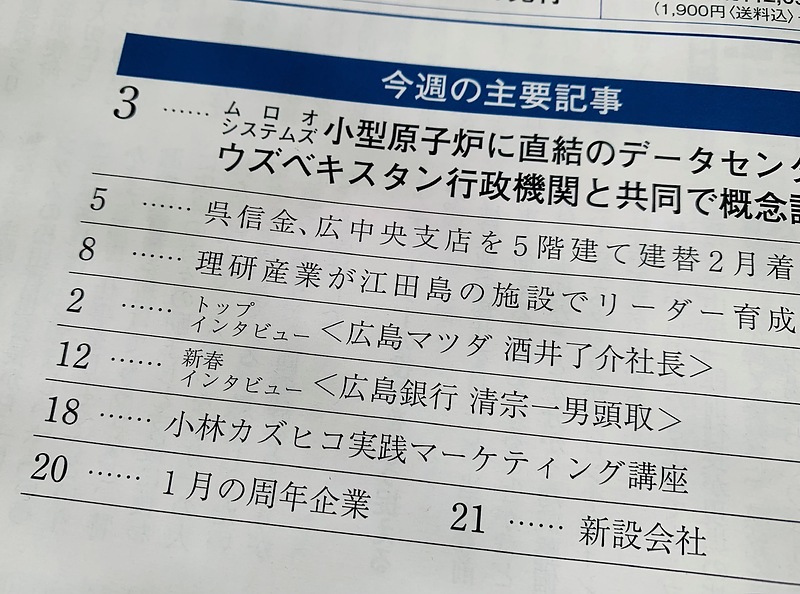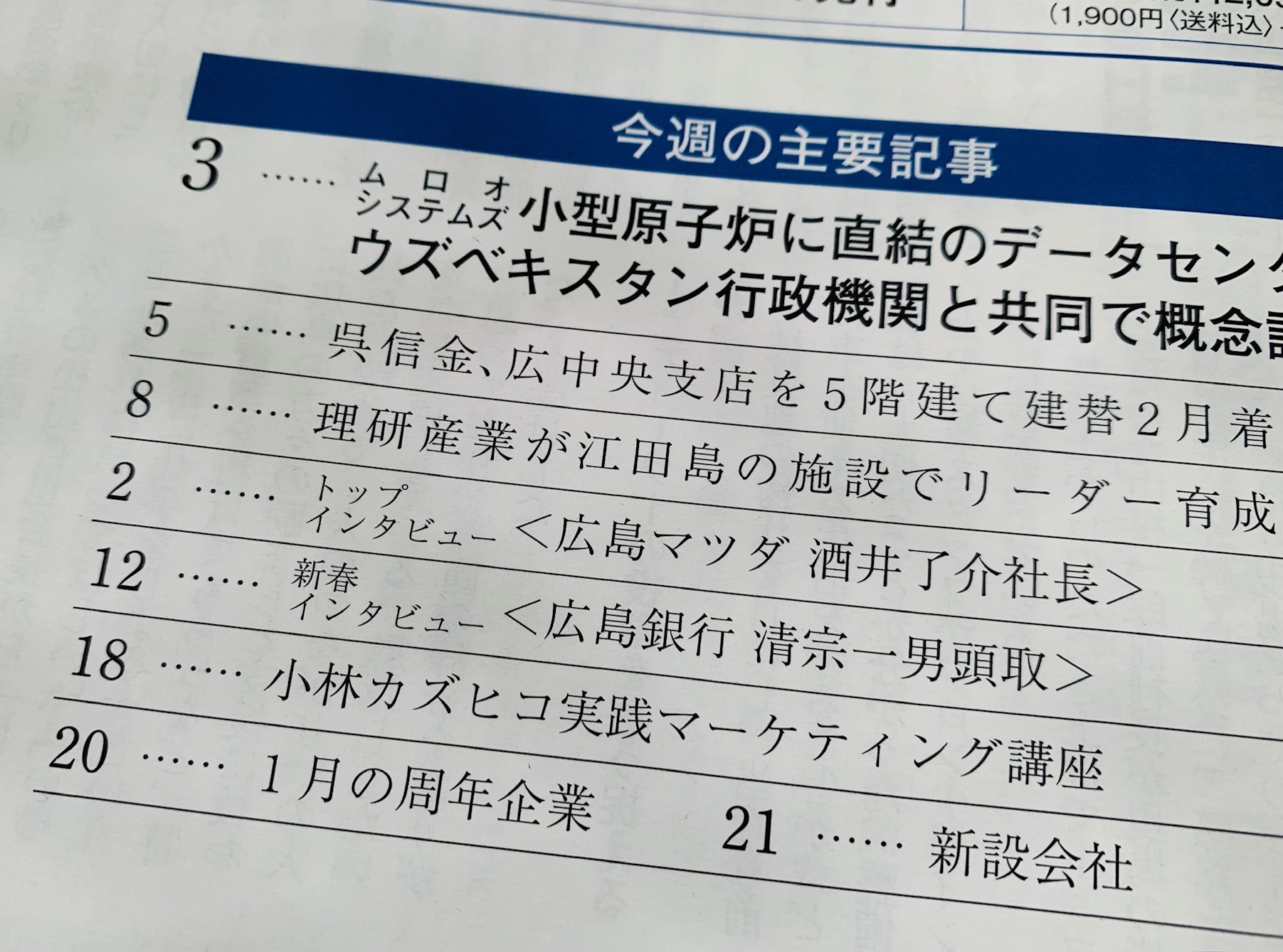 本日発売の広島経済レポート1/15号に、