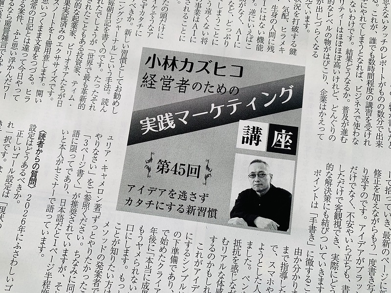 私の「経営者のための実践マーケティングレポート」第45回が掲載された。