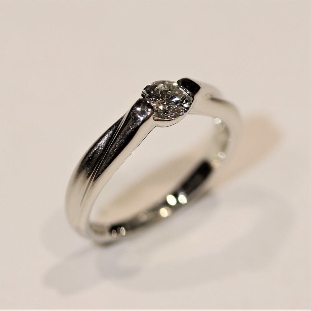 広島市西区K様のプラチナ立て爪ダイヤリングを引っかかりのないシンプルなリングにジュエリーリフォームさせていただきました。