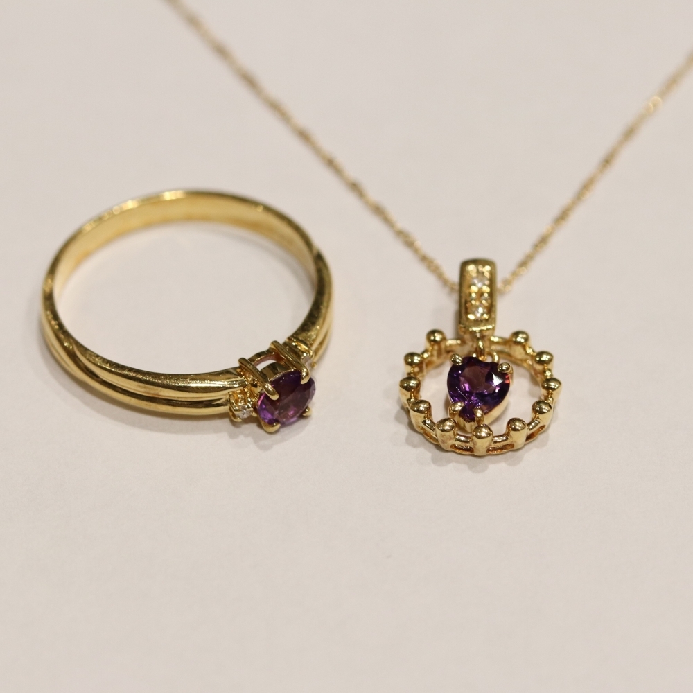 広島市西区K様の18金のアメジストペンダントネックレスとリングを合わせて一つのペンダントネックレスにジュエリーリフォームさせていただきました。