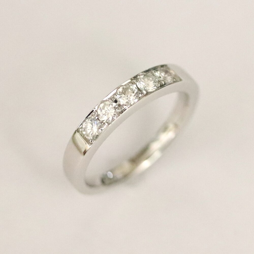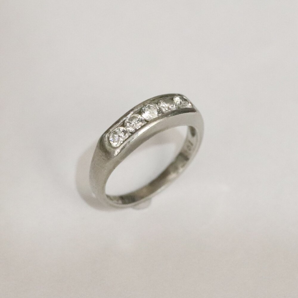 広島市安芸区H様のプラチナダイヤ一文字リングを背を低く、引っかかりにくいデザインにジュエリーリフォームさせていただきました。