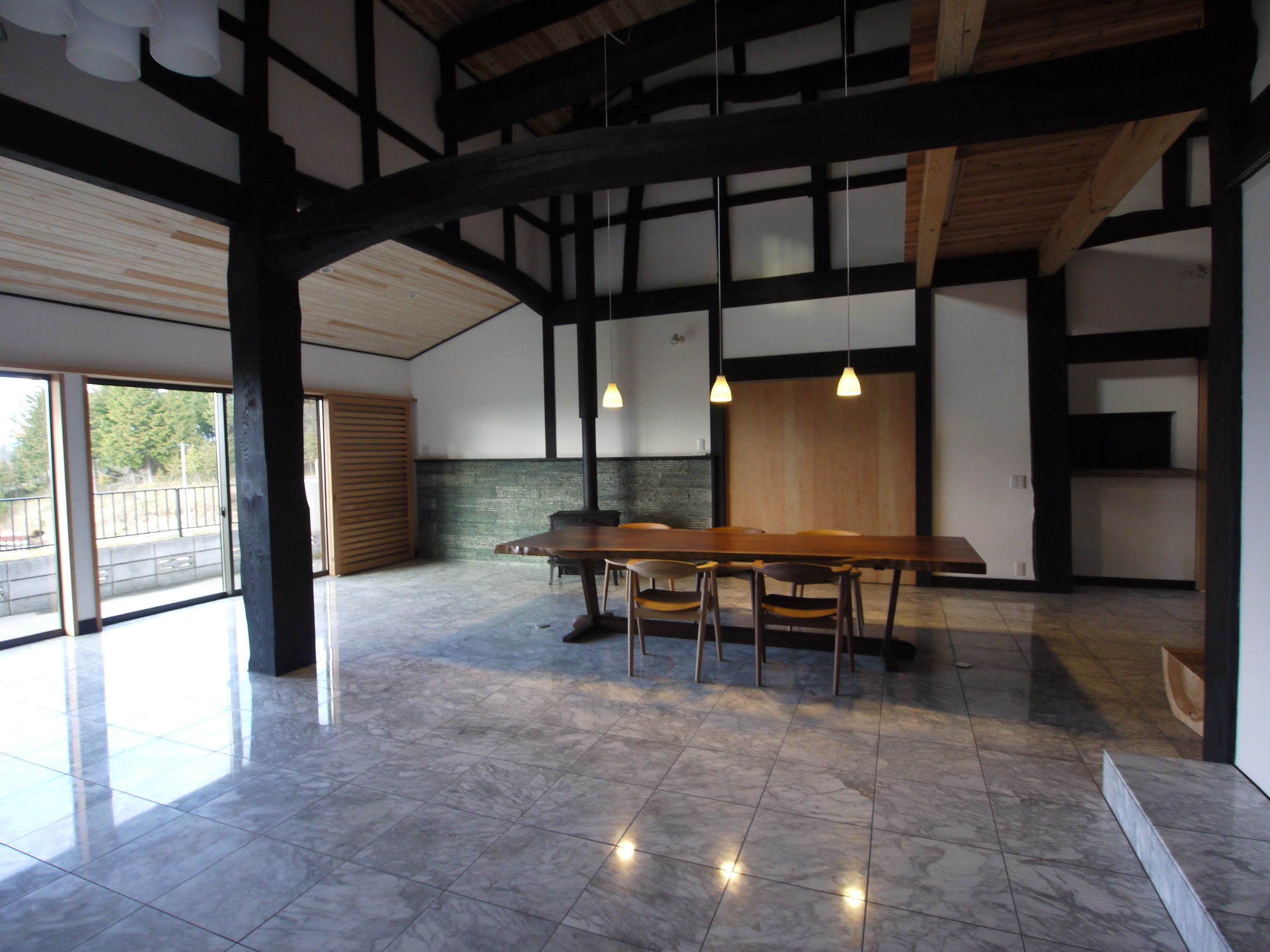 囲炉裏があった場所を含めての吹く抜けの大空間に