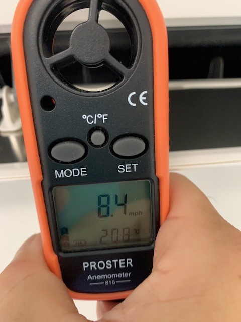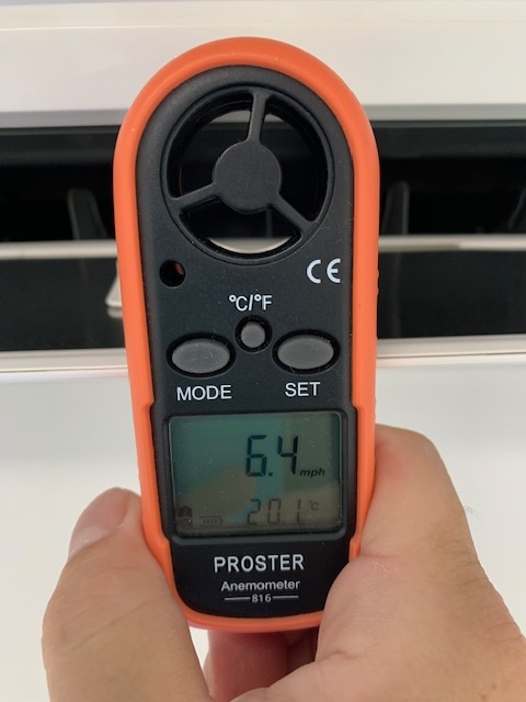風速計を用いてクリーニング前の風量をクリーニング後の数値で比較してみました。