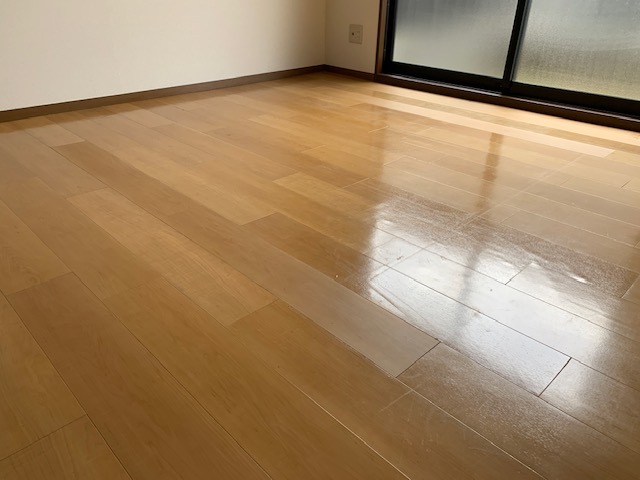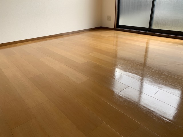 一般家庭の床も古いワックスを剥して新たにワックスを掛け光沢を出します。
