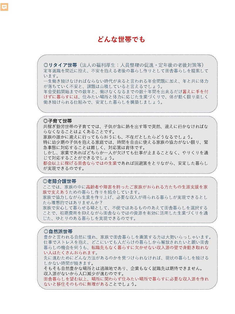 何もないと言われる過疎地で暮らすには就職を前提にした移住には無理があります。過疎の主因でもある就職先などないという前提の収入源作りが必須、その可能性と、成功事例で田舎で暮らせることを知ってください。
