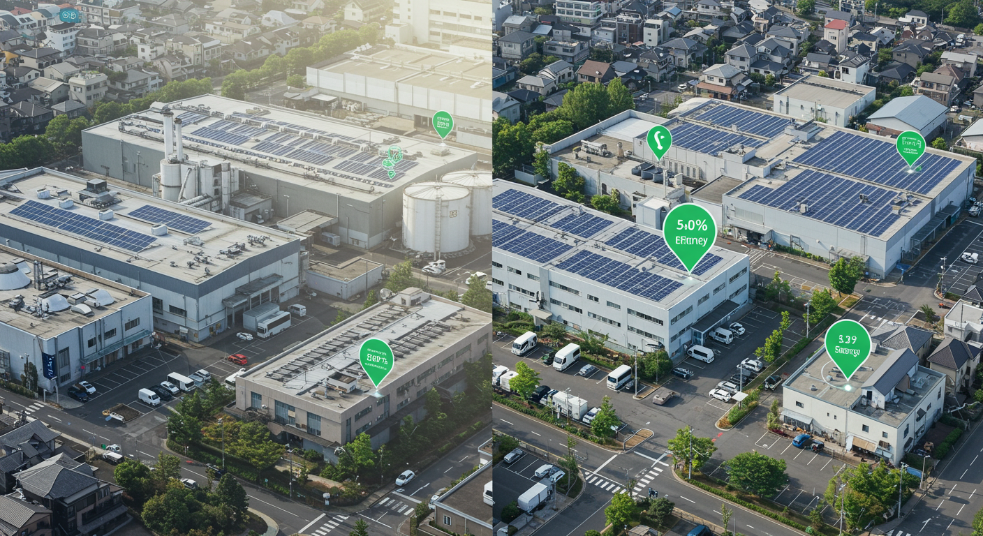 実例:東広島市の機械部品メーカーC社では、まず工場の屋根を高反射塗料に塗り替え(投資額350万円)、空調負荷を15%削減。その効果を確認した後、太陽光発電の導入(投資額2,800万円)を決断しました。補助金活用で実質負担を抑えながら、年間の電力コストを40%削減することに成功しています。