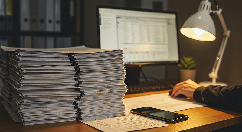 毎月の給与計算前になると、建設業の経理担当者の多くが頭を抱えています。複数の現場を抱える中、日報の収集、工数の集計、残業時間の管理。デスクには紙の書類が積み重なり、パソコンの画面にはExcelのシートが並びます。