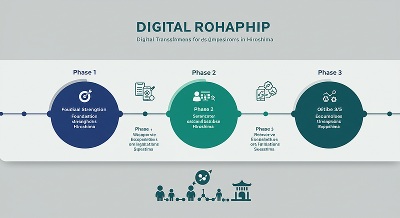 まず、段階的DX導入ロードマップを考えましょう。広島県内の成功事例を分析すると、以下のようなステップで進めると効果的です。