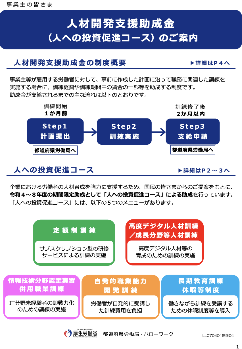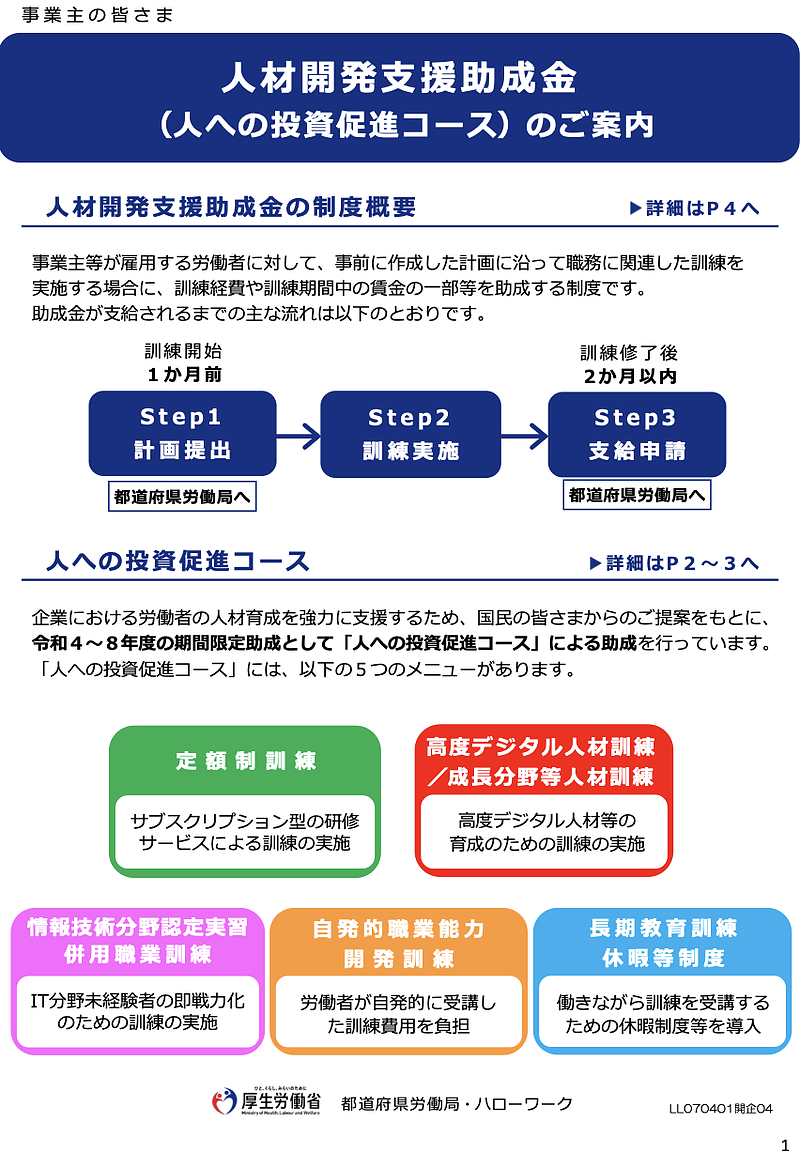 出典:厚生労働省ホームページ |人材開発支援助成金より