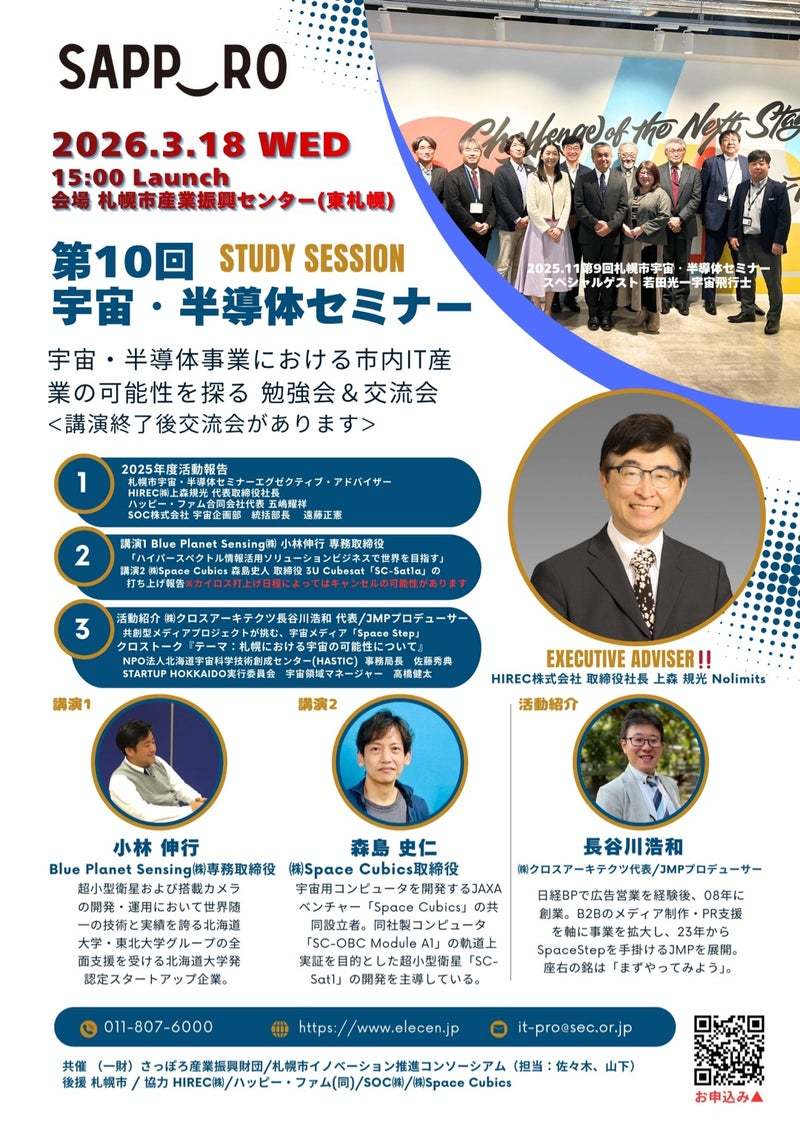 今後は、2026年5月の第11回セミナーに向け、さらに教育分野との融合(生涯学習としての大人・ジュニア層への宇宙教育の普及など)を加速させ、札幌の宇宙産業の土台作りを強力に推進してまいります。