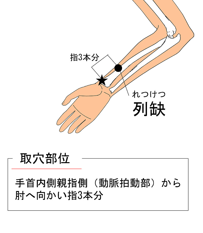 - 手首の親指側から肘に向かって指3本分の位置にあります。