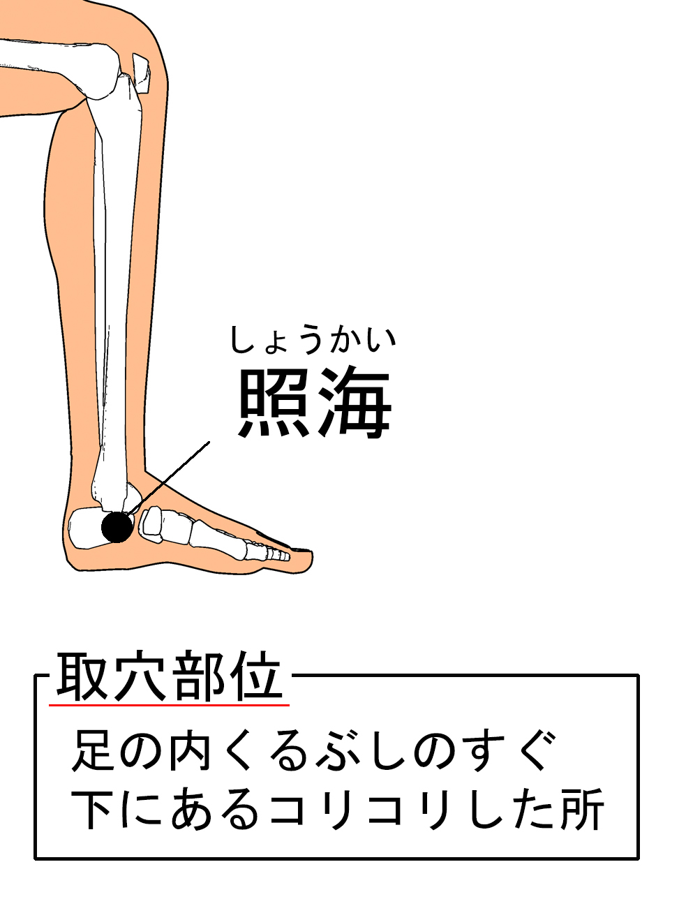 - 足の内くるぶしのすぐ下に位置します。