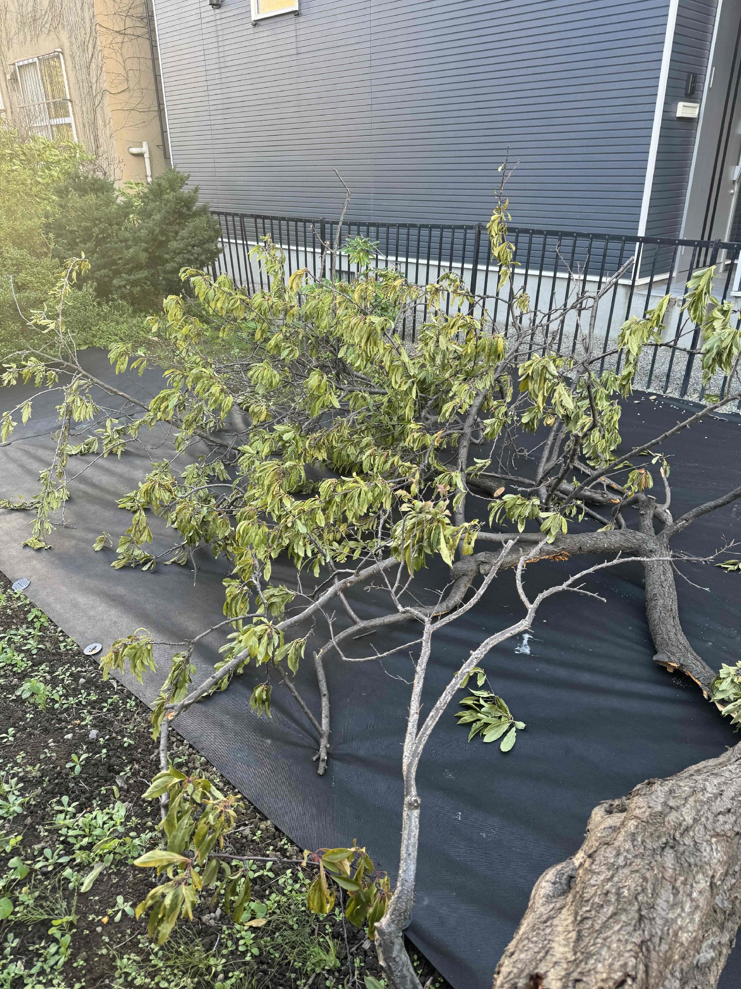 これはあまり知られていないことですが、木の周りに防草シートを敷きますと、根の呼吸と水分の吸収を妨げますので、生育にかなりの悪影響を及ぼします。