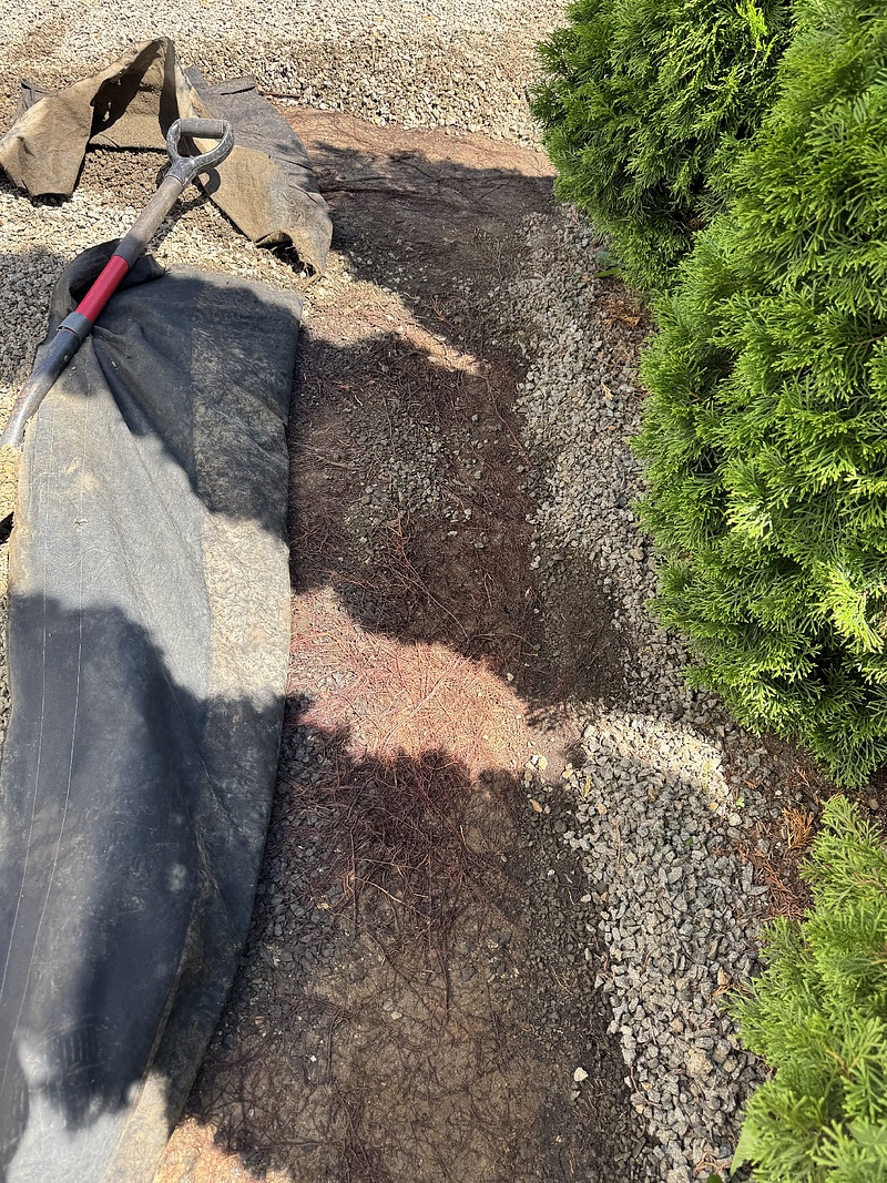 ・防草シートをはがすと細い弱々しい根が酸素を求めて地表に出てきていました。