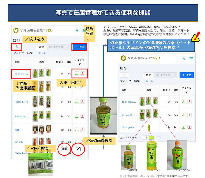 アパレル、リサイクル業、建設資材、食品、部品管理など、あらゆる業界で活躍。写真を撮るだけで、簡単・正確・スマートな在庫管理を実現。新しい在庫管理のカタチを体験してください!