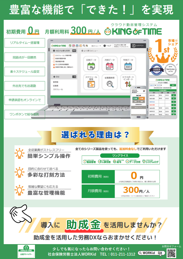 ITに強い社労士法人「ワーキッド」がKING OF TIMEの定着サポートします!