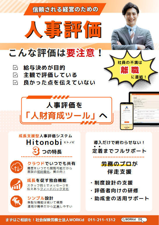 弊社で開発した評価制度システム・勤怠管理システムを使用し、