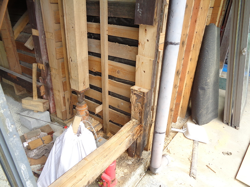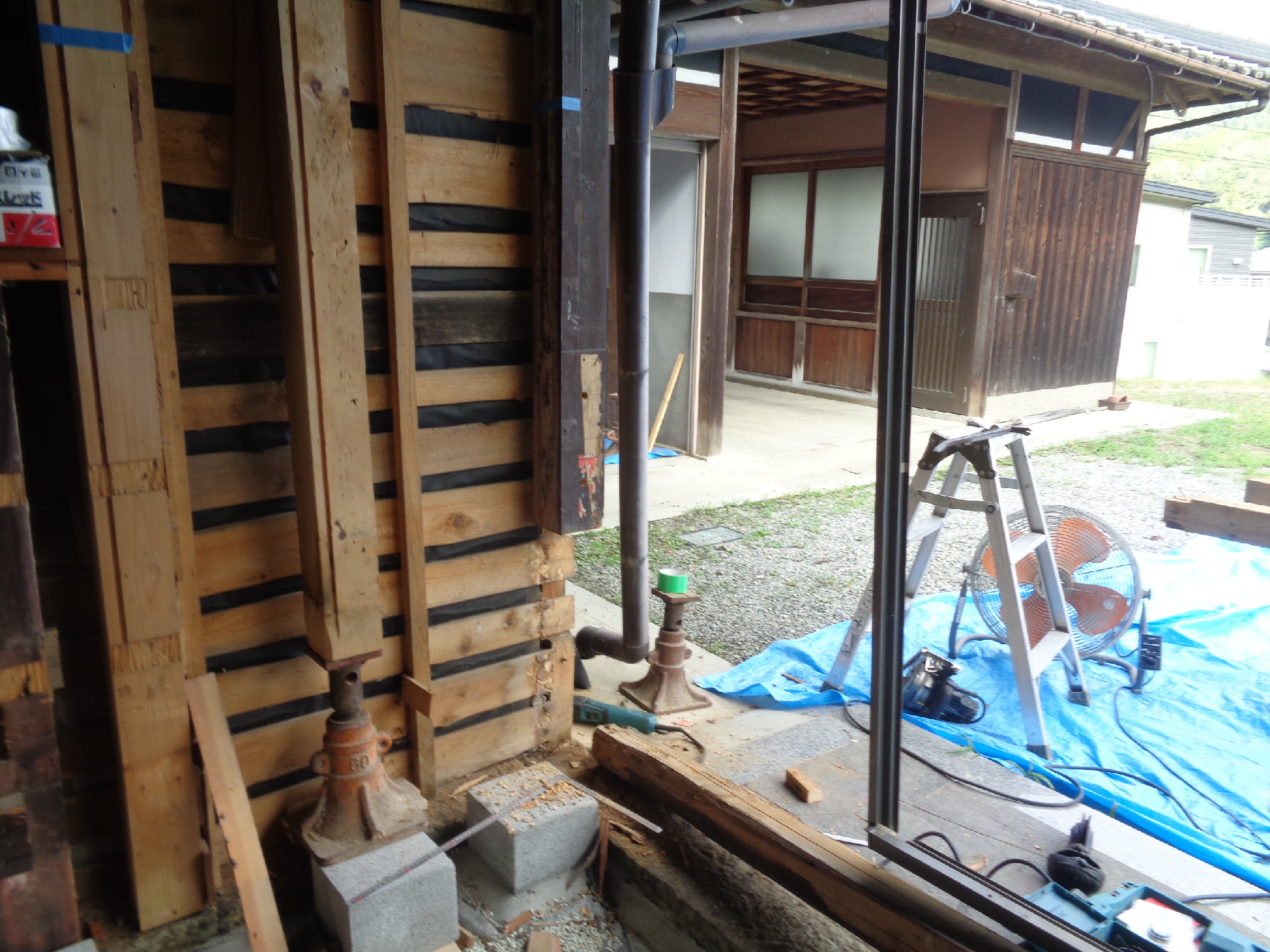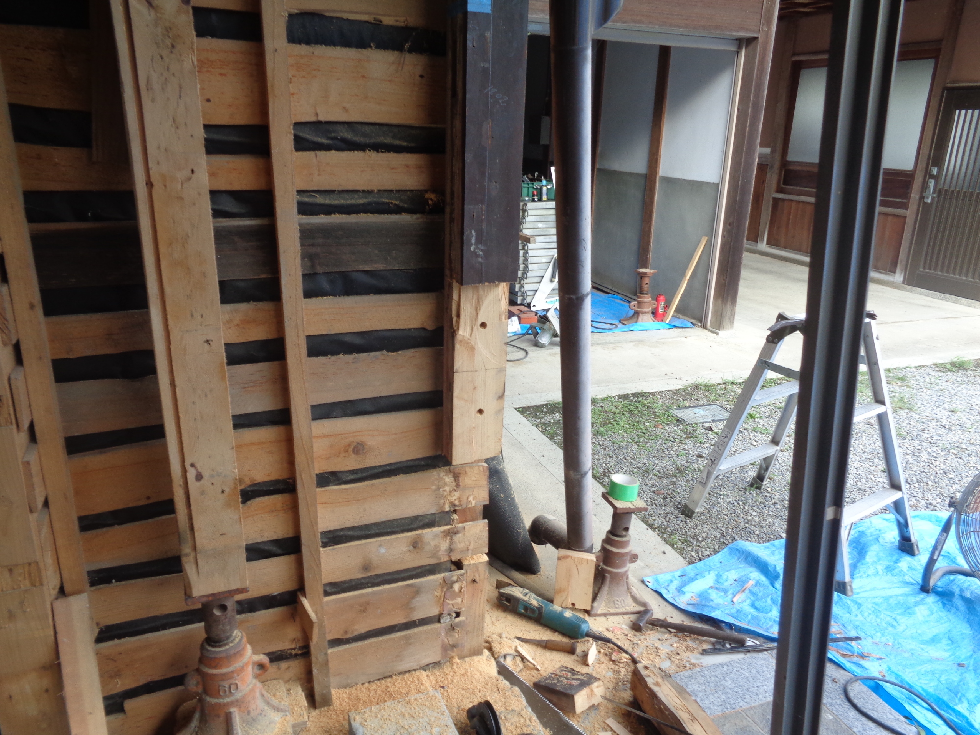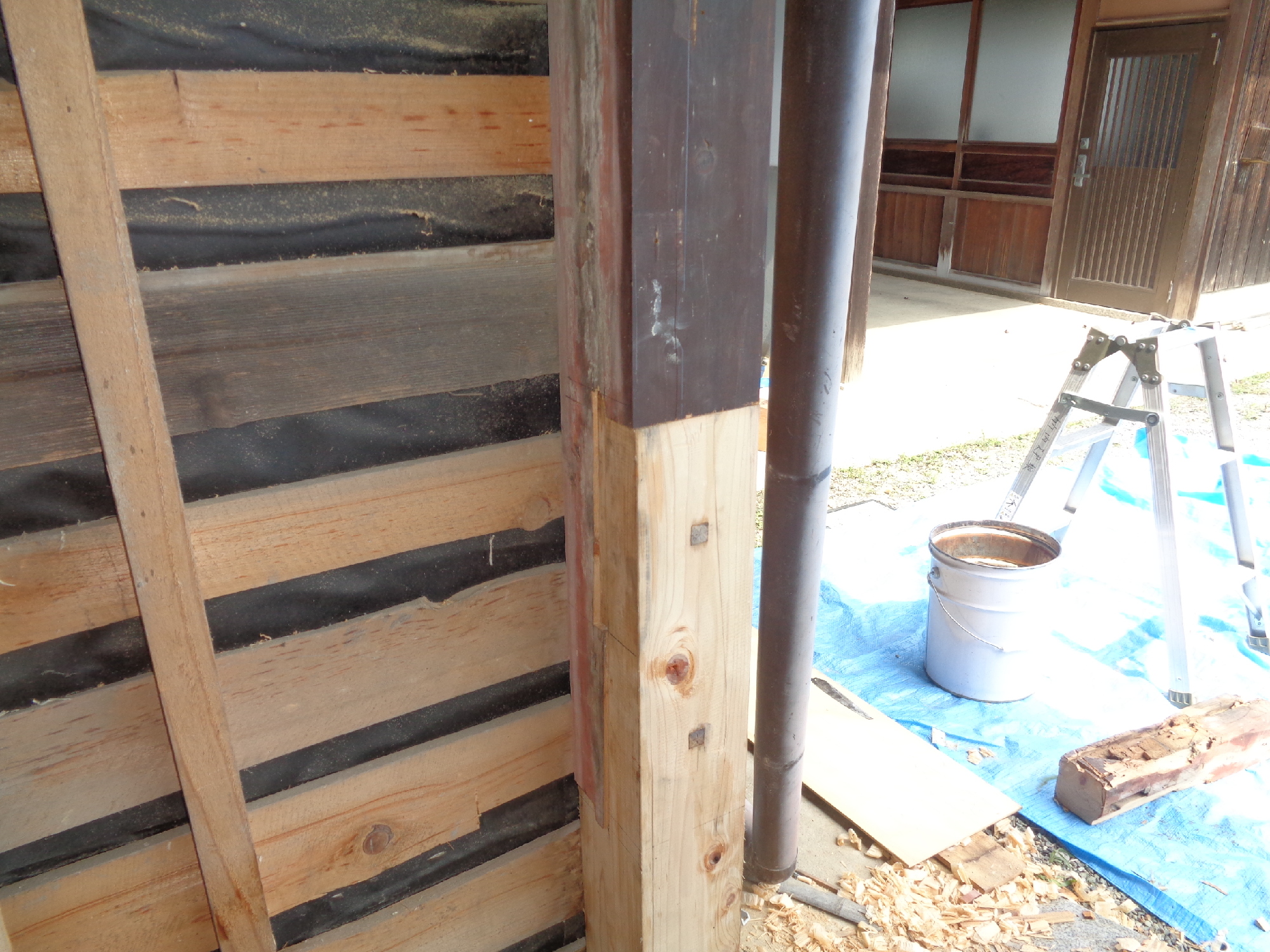 この柱は根継ぎする事にしました。裏にラス板地があるので