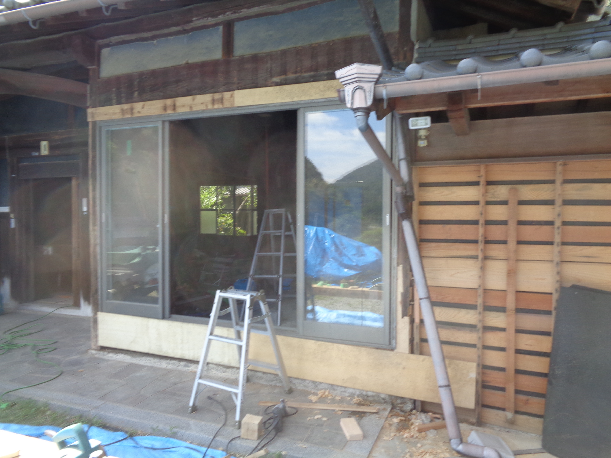 最後にサッシが入るまで仮のサッシと害獣が入らないように養生します。