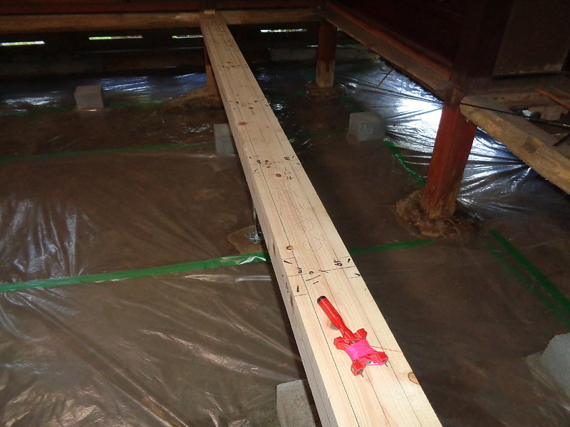桧の150×105と交換する事としました。根太は確認して使えるものは