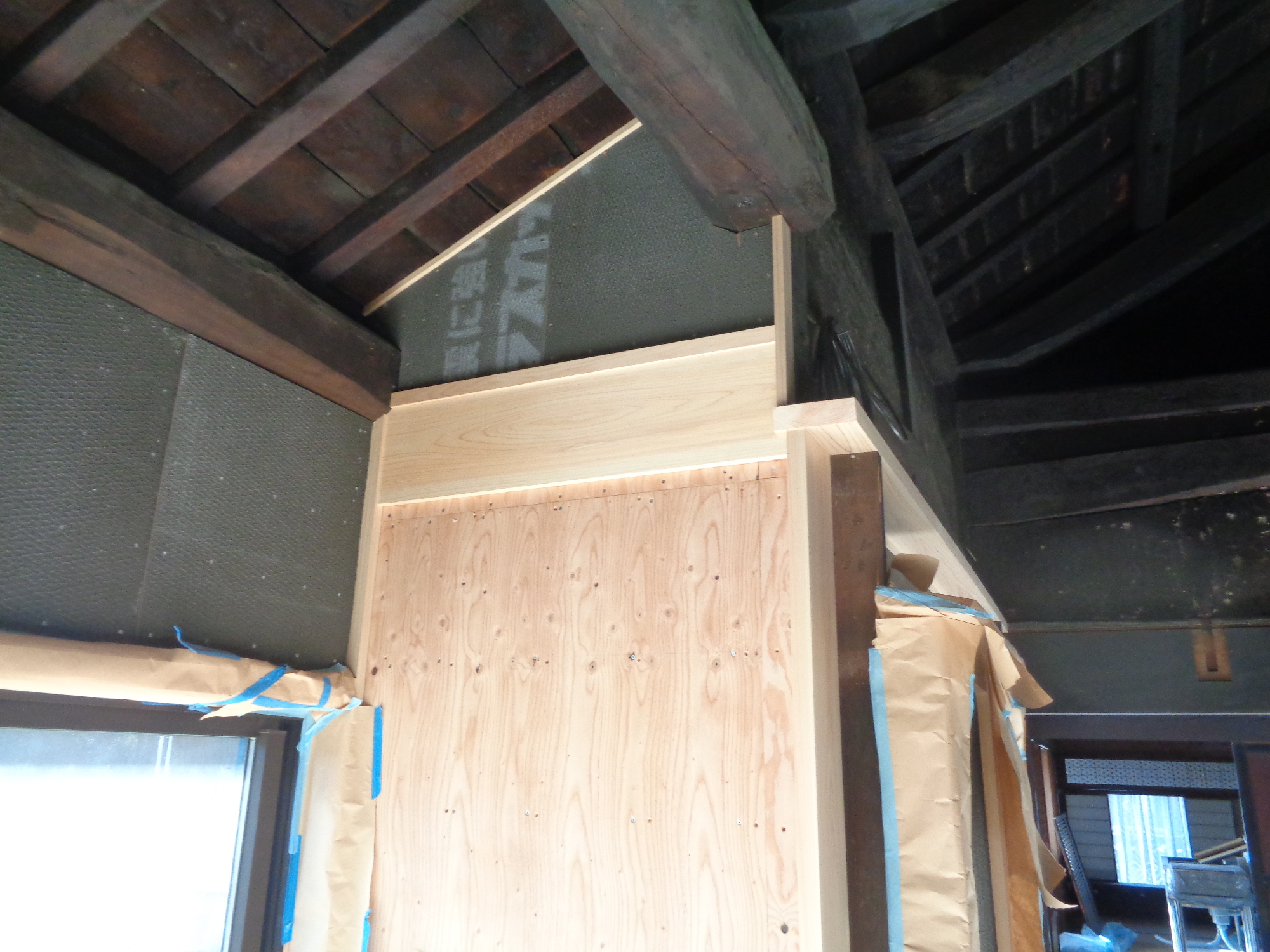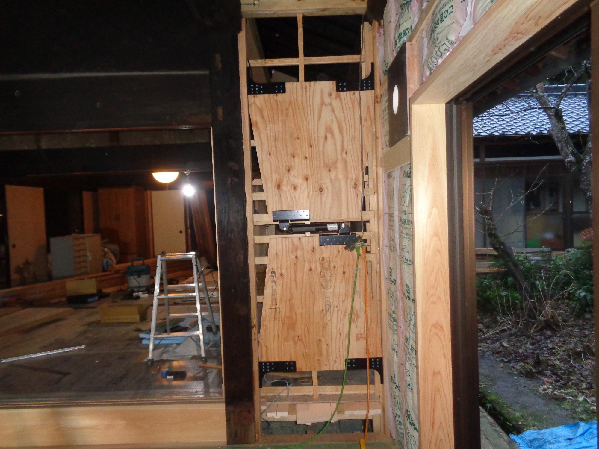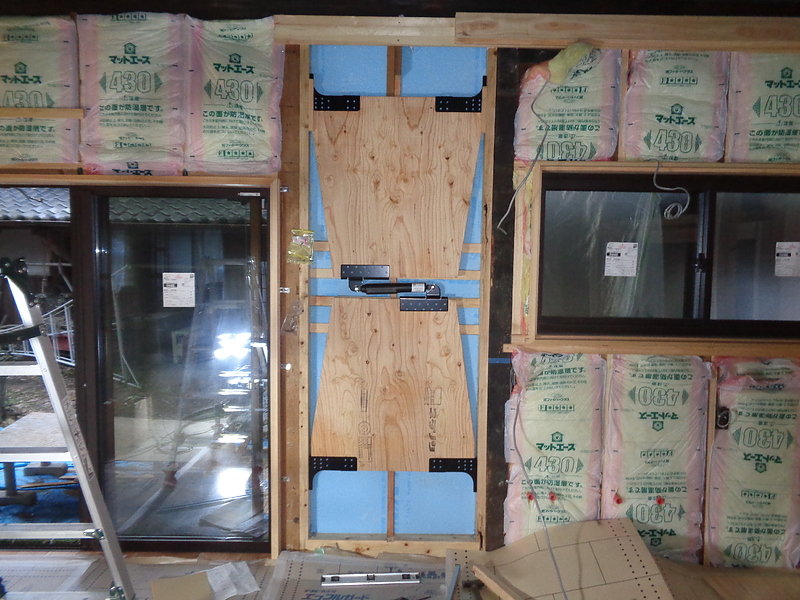 耐震改修工事も併用しますのでしかるべき場所に構造用合板を施行致します。