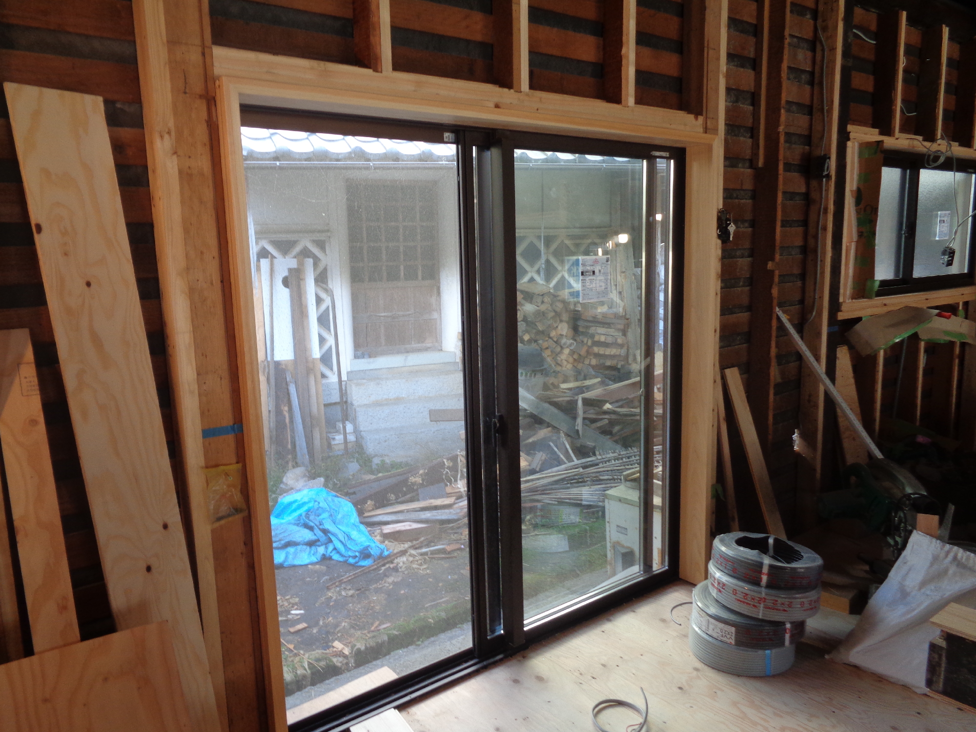 窓枠 囲炉裏 見切り 枠等随時仕上げて取り付けていきます。