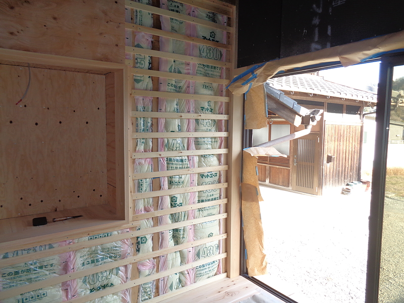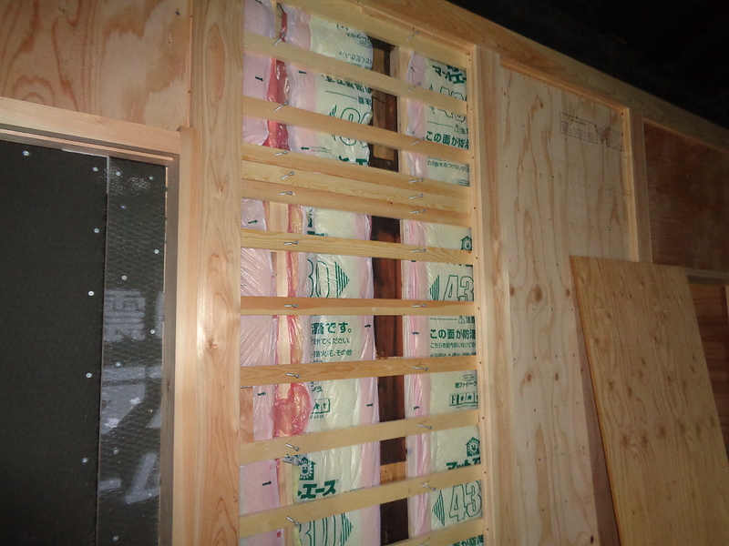 構造用合板を捨て貼りします。ビスの場合、耐震用のビスがあるようで