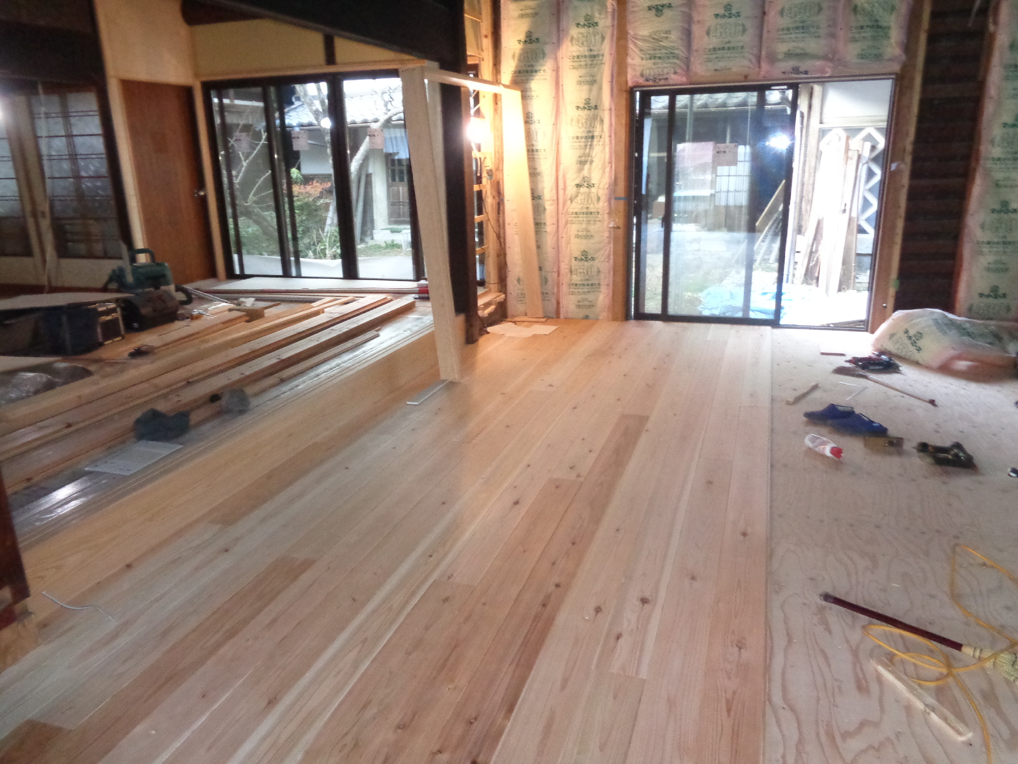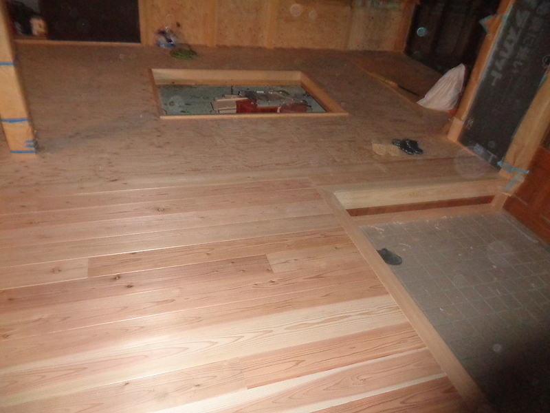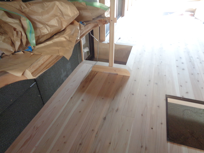 床は一等の4m×105mm×15mmの杉材です。杉は断熱効果もあり