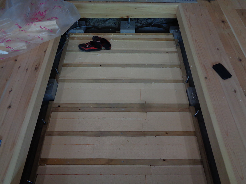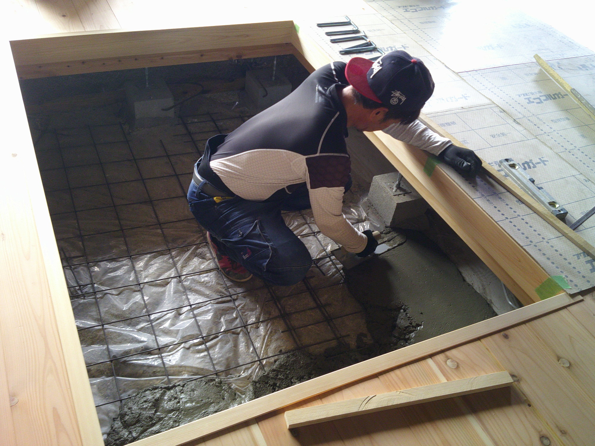 それが為に床を左官屋さんに仕上げてもらい断熱材をいれ床の準備をします。