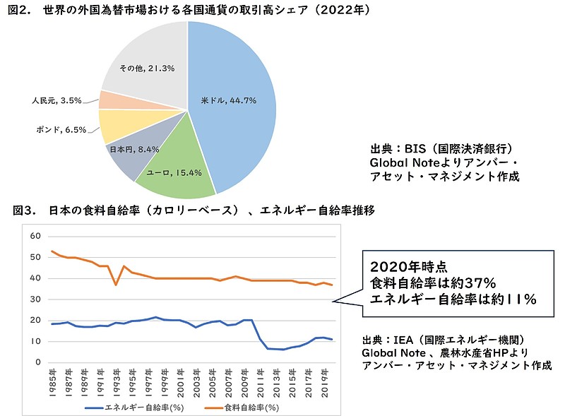外国為替市場における取引高のシェアを見ると日本円は2022年で1割未満に留まり、日本円だけで運用することは世界の1割未満の資産だけで運用することになります。