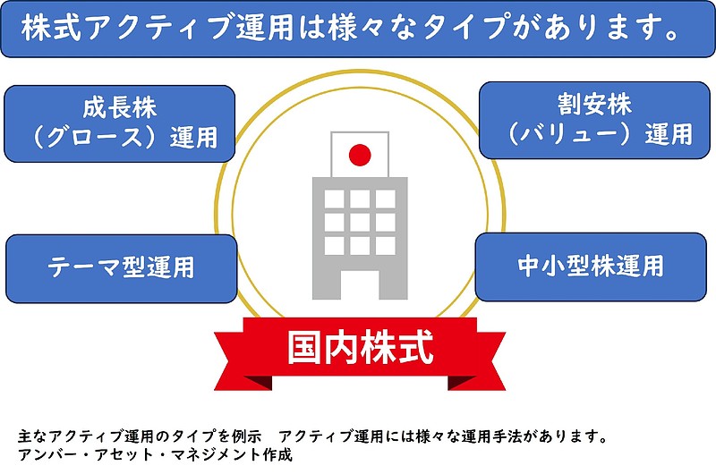 日本株も含めて株式の投資信託には様々なタイプの運用があります。所謂、アクティブ運用についてもグロースと呼ばれる成長株運用やバリューと呼ばれる割安株運用、様々な投資テーマに着目して運用するテーマ型や中小型株運用などもあります。