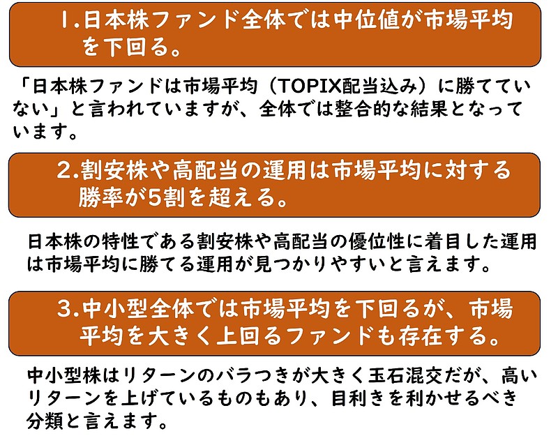 - 日本株の投資信託を探す際に、日本株の特性は優れた運用を発掘する道標になる