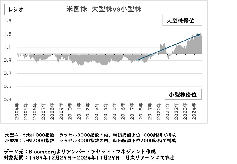 その以前は僅かに小型株が優位な市場であり、米国株はリターン特性が変化しています。