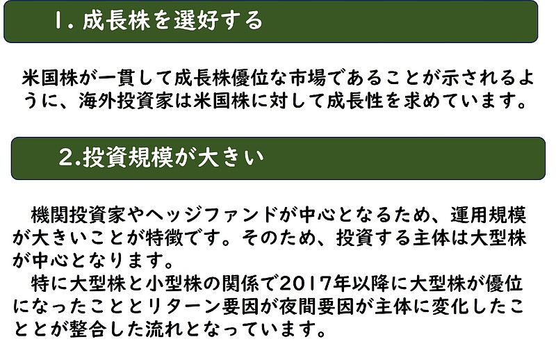 ここで米国株の主体となっている海外投資家についてその特徴を見ると以下の様な点が挙げられます。