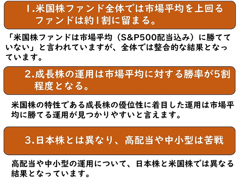 - 米国株の投資信託を探す際に、米国株の特性は優れた運用を発掘する道標になる