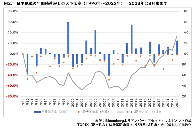 下落した際には、感情的に市場に対する不安から売却する誘惑にかられるかもしれませんが、土台となる企業や国の経済活動などから下落の背景を冷静に見極めて、保有を継続することが長期で見て有効になります。