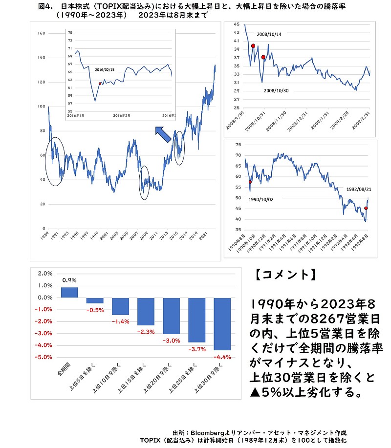 - 大きな上昇は大幅な下落後に出現、そのタイミングを事前に予測するのは困難
