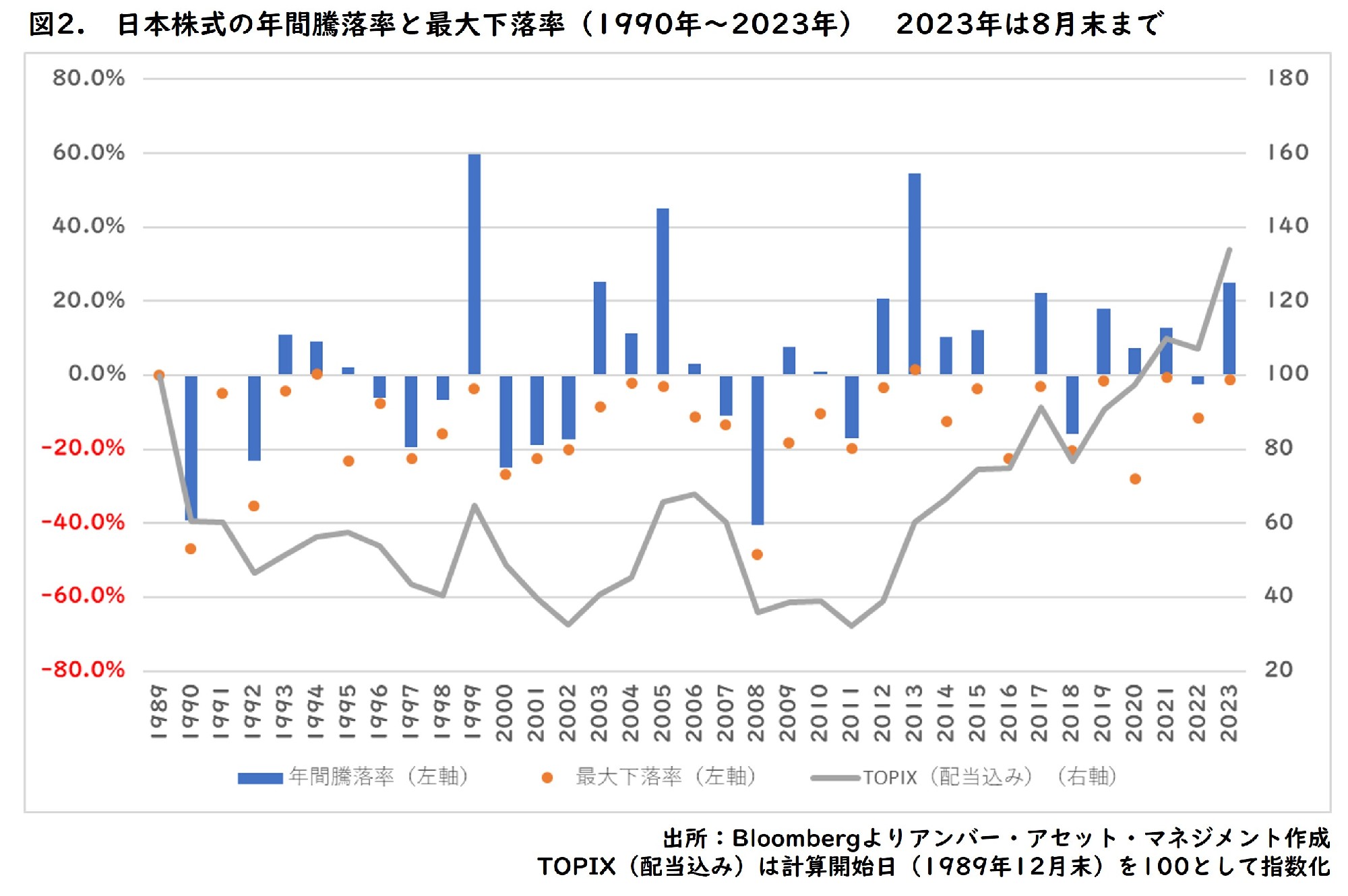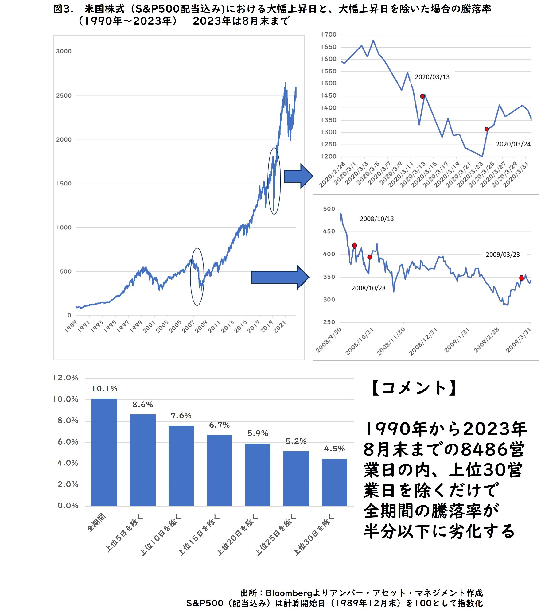 また、1990年以降の株式市場において、1日騰落率の上位はリーマンショックやコロナ危機などで大幅な下落を経験した後に出現しています。